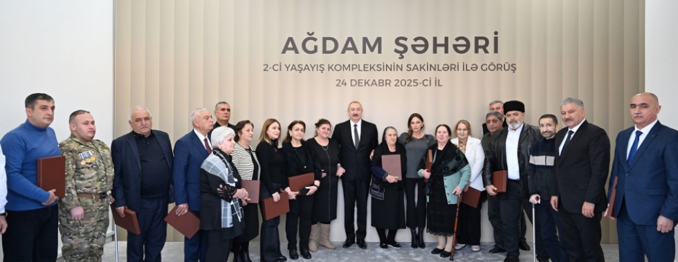 Prezident İlham Əliyev Ağdamda 2-ci yaşayış kompleksinin açılışında iştirak edib və buraya köçən sakinlərlə görüşüb -