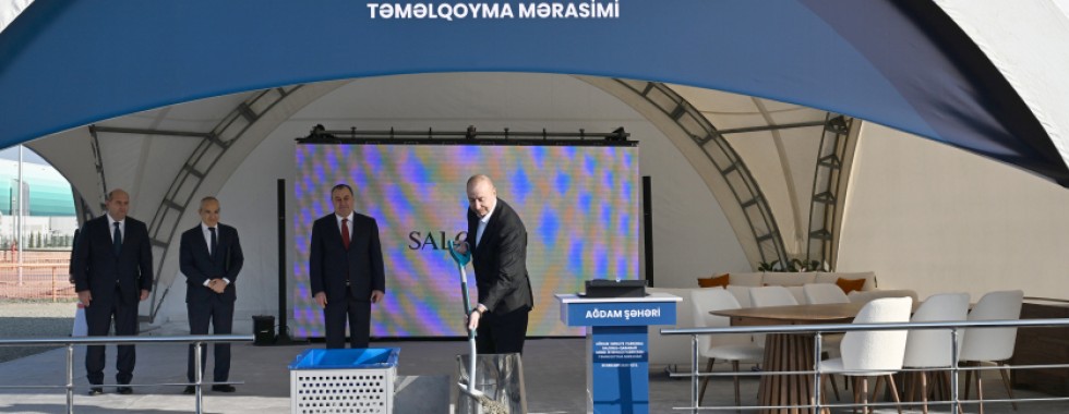 Prezident İlham Əliyev Ağdam Sənaye Parkında “Saloğlu Qarabağ” MMC-nin istehsal müəssisəsinin təməlini qoyub