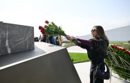 Birinci xanım Mehriban Əliyeva abidənin önünə gül dəstələri düzdü.