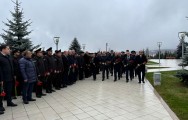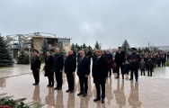 Əvvəlcə Ulu Öndər Heydər Əliyevin büstü önünə gül dəstələri düzülüb.
