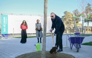 Prezident İlham Əliyev, birinci xanım Mehriban Əliyeva və qızları Palıd meydanı parkında ilk palıd ağacını əkdilər.