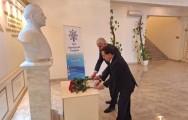 Əvvəlcə Ümummilli Lider Heydər Əliyevin büstü ziyarət edilib, önünə tər güllər düzülüb.