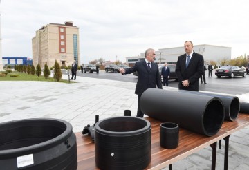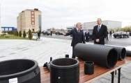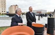 Sonra Prezident İlham Əliyevə layihənin icrasında istifadə olunan tikinti materialları, xüsusilə də borular haqqında məlumat verildi. Bildirildi ki, həm su, həm də kanalizasiya şəbəkəsinin qurulması zamanı bütün köhnə xətlər yeniləri ilə əvəz olunub və yüksək keyfiyyətli borulardan istifadə edilib.