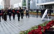 Abidənin önünə əklil və gül dəstələri qoyulub, soyqırımı qurbanlarının əziz xatirəsi ehtiramla yad olunub.