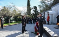 Qəhrəmanlar Memorialında Azərbaycan Prezidentinin şərəfinə fəxri qarovul dəstəsi düzülmüşdü.