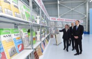 Dövlətimizin başçısı zavodun fəaliyyəti ilə tanış oldu. Məlumat verildi ki, burada gips əsaslı suvaq, astar və üzlük yaxı materialları, inşaat və dekorativ məmulatların hazırlanması üçün gips, aralıq doldurucuları, gips blok yapışdırıcıları, gips hörgü blokları və digər məhsullar istehsal olunacaq. Burada 300 yeni iş yeri yaradılacaq. Müəssisənin istehsal prosesində ekoloji təmiz məhsul əldə etməyə və enerjiyə qənaətə xüsusi diqqət yetirilir. Bu isə öz növbəsində məhsulun maya dəyərini aşağı salır. Nəticədə istehlakçılara daha münasib qiymətlərlə onların tələbatına uyğun yüksək keyfiyyətli gips əsaslı məhsullar təqdim ediləcək. Bunun sayəsində ölkəmizin ixrac potensialının daha da artırılması mümkün olacaq. Zavod dünyanın aparıcı şirkətlərinin müasir avadanlıqları əsasında qurulub.