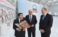 Prezident İlham Əliyev: Bu gözəl şəraitdə işləmək insanlara zövq verir. Təbrik edirəm. Fəaliyyətinizi daha da genişləndirin. Həm şirkət, həm ölkə iqtisadiyyatı, sənaye istehsalı inkişaf etsin.