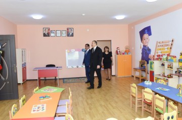 Dövlətimizin başçısına məlumat verildi ki, körpələr evi-uşaq bağçası 1989-cu ildə inşa edilib. Əsaslı təmir işlərinə 2014-cü ilin avqustunda başlanılıb. Binanın ümumi sahəsi 13 min, tikintialtı sahəsi isə 2 min kvadratmetrdən artıqdır. Bağçanın ərazisi hasarlanıb, yaşıllıq zolağı yaradılıb, uşaqların istirahətini mənalı təşkil etmək üçün yay çardaqları, əyləncə və oyun avadanlığı quraşdırılıb. Bina üçün su anbarı, qazanxana tikilib.
