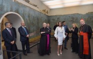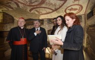Azərbaycanın birinci xanımı Mehriban Əliyeva və kardinal Ravazi katakombaların bərpadan sonra rəmzi açılışını bildirən lenti kəsdilər.