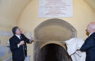 Girişdə katakombaların Heydər Əliyev Fondu tərəfindən bərpa olunmasını bildirən lövhənin üzərindən ağ örtük götürüldü.