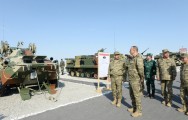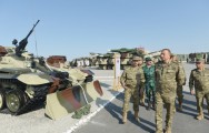 Sonra dövlətimizin başçısına Azərbaycan Ordusunun yeni, ən müasir standartlara cavab verən hərbi texnika, silah və sursatları təqdim olundu.