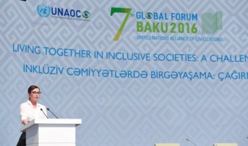 Aprelin 27-də BMT-nin Sivilizasiyalar Alyansının VII Qlobal Forumu çərçivəsində “Sosial inteqrasiya sahəsində qabaqcıl metodlar” mövzusunda ikinci plenar iclasında çıxış edən Azərbaycanın birinci xanımı, Heydər Əliyev Fondunun prezidenti, UNESCO-nun və ISESCO-nun xoşməramlı səfiri Mehriban Əliyeva