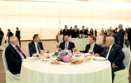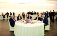 Dövlətimizin başçısı ziyafətdə iştirak edən qonaqlarla görüşdü, onlarla söhbət etdi.