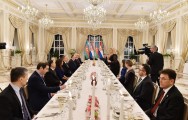 Dövlət başçıları ziyafətdə çıxış ediblər.