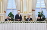 Dövlətimizin başçısı ölkəmizin daim milli və dini dəyərlərə sadiqlik nümayiş etdirdiyini dedi. Azərbaycanda dinlərarası dialoqun nümunəvi xarakter daşıdığını və bütün millətlərin bir ailə kimi yaşadıqlarını qeyd etdi. Ulu öndər Heydər Əliyevin Vətən və xalq qarşısında misilsiz xidmətlərini vurğulayan Prezident İlham Əliyev bəşəri dəyərlərə hörmətlə yanaşılan, beynəlxalq birliyə uğurla inteqrasiya edən Azərbaycanın İslam həmrəyliyinə də töhfələrini əsirgəmədiyini dedi.