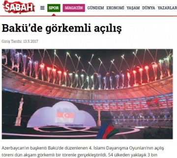 Türkiyənin aparıcı kütləvi informasiya vasitələri “Bakı-2017” İslam Həmrəyliyi Oyunları barədə geniş məlumatlar yayır.