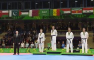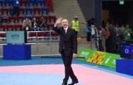 Prezident İlham Əliyev IV İslam Həmrəyliyi Oyunlarında qalib gələn taekvandoçulara medalları təqdim edib