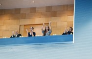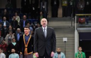 Azərbaycan Respublikasının Prezidenti, Milli Olimpiya Komitəsinin prezidenti İlham Əliyev və birinci xanım, IV İslam Həmrəyliyi Oyunlarının Təşkilat Komitəsinin sədri Mehriban Əliyeva və ailə üzvləri final qarşılaşmalarına baxıblar.