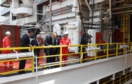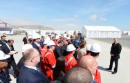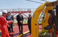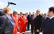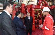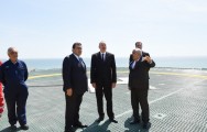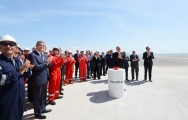 Prezident İlham Əliyev Heydər Əliyev adına yarımdalma qazma qurğusunun açılışında iştirak edib
