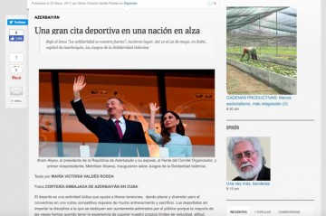 Kubanın nüfuzlu “Bohemia” jurnalında bu ölkənin tanınmış jurnalisti Maria Viktoria Valdesin Azərbaycanda uğurla keçirilmiş IV İslam Həmrəyliyi Oyunları barədə geniş məqaləsi dərc edilib.