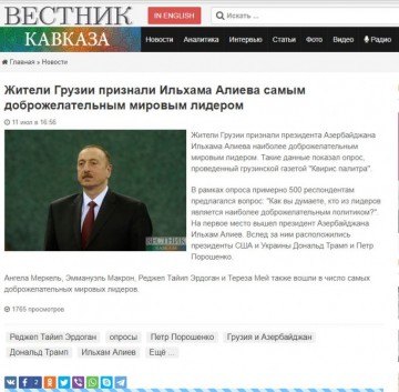 Gürcüstan əhalisi arasında keçirilən rəy sorğusunun nəticələrinə görə, Azərbaycan Prezidenti İlham Əliyev dünyada “Ən xeyirxah” lider seçilib.