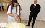 Dövlətimizin başçısı məktəbin binasının rəmzi açılışını bildirən lenti kəsdi.