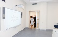 Prezident İlham Əliyev və xanımı Mehriban Əliyeva məktəbdə yaradılmış şəraitlə tanış oldular.