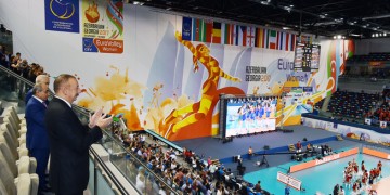 Prezident İlham Əliyev voleybol üzrə milli komandamızın oyununa baxıb