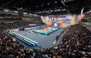 Azərbaycan Respublikasının Prezidenti İlham Əliyev və birinci xanım Mehriban Əliyeva Azərbaycan və Almaniya voleybolçularının oyununa baxıblar.