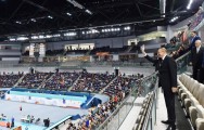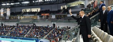 Azərbaycan Respublikasının Prezidenti İlham Əliyev komandaların oyununa baxıb.