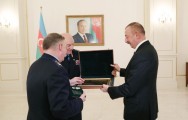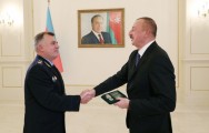 Vladimir Kulişov MDB Sərhəd Qoşunları Komandanları Şurasının yaradılmasının 25 illiyinə həsr olunmuş xatirə medalını və hədiyyələri dövlətimizin başçısına təqdim etdi.