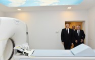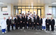 Dövlətimizin başçısı xəstəxananın rəmzi açılışını bildirən lenti kəsdi.