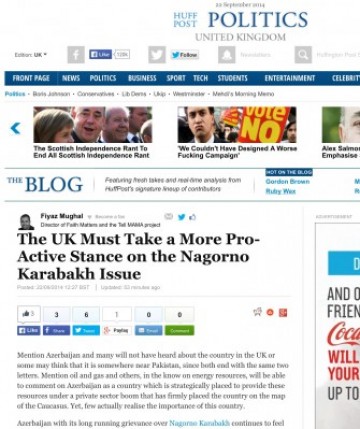 Londonda nəşr edilən “The Huffington Post” qəzetində “Böyük Britaniya Dağlıq Qarabağ münaqişəsinin həllində daha fəal mövqe nümayiş etdirməlidir” sərlövhəli məqalə dərc olunub.