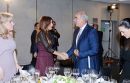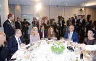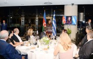 Daha sonra Azərbaycanın birinci xanımı Mehriban Əliyeva çıxış etdi: “Bu möhtəşəm məkanda sizi salamlayıram və 2015-ci ildə Bakıda keçiriləcək ilk Avropa oyunlarının təqdimatına həsr olunmuş şam yeməyinə qoşulduğunuz üçün sizə təşəkkürümü bildirirəm. Yunanıstana yenidən qayıtmaq məndə böyük məmnunluq hissi oyadır və mükəmməl qonaqpərvərliyiniz üçün sizə təşəkkürümü bildirirəm. Dünən biz hamımız tarixi İrodio teatrında gözəl konsertdən həzz aldıq və havanın yağışlı olacağı barədə proqnoza baxmayaraq hava şəraiti çox yaxşı idi. Əlverişli hava şəraitinin olması çox yaxşı işarə idi. Dəyərli töhfəsinə görə əziz dostum Marianna Vardinoyannisə dərin və səmimi təşəkkürümü bildirmək istəyirəm. Çox şadam ki, onun simasında həm UNESCO, həm də ikitərəfli əlaqələrimizdə uzun illərdir ki, yaxın əməkdaşlıq apardığımız həqiqi dostumu tapmışam”.