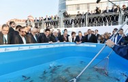 Sonra prezidentlər Həştərxanda yetişdirilən nərə balıqlarının Volqa çayına buraxılması mərasimində iştirak ediblər.