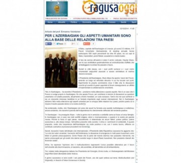 İtaliyanın “Ragusa Oggi” xəbər saytında IV Bakı Beynəlxalq Humanitar Forumu ilə bağlı ətraflı məlumatların yer aldığı yazı yerləşdirilib.