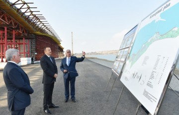 Prezident İlham Əliyev Pirallahı adasını Abşeron yarımadası ilə birləşdirəcək yeni körpüdə görülən inşaat işləri ilə tanış olub