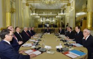 Daha sonra Fransa Respublikasının Prezidenti Fransua Ollandın, Azərbaycan Respublikasının Prezidenti İlham Əliyevin və Ermənistan Respublikasının Prezidenti Serj Sarkisyanın ATƏT-in Minsk qrupunun həmsədrlərinin iştirakı ilə birgə görüşü keçirilib.