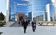 Dövlətimizin başçısı Gənclər Evinin rəmzi açılışını bildirən lenti kəsdi.