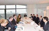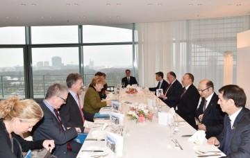 Prezident İlham Əliyev xeyli sayda alman şirkətinin Azərbaycan iqtisadiyyatının şaxələndirilməsində fəal iştirakını məmnunluqla qeyd etdi, əməkdaşlığın daha da genişləndirilməsi üçün yaxşı potensialın olduğunu bildirdi. Dövlətimizin başçısı Azərbaycan-Avropa İttifaqı əlaqələrinə toxunaraq bu münasibətlərin uğurla inkişaf etdiyini bildirdi.