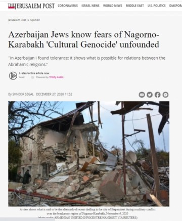Bu fikirlər Azərbaycandakı aşkenazilərin baş ravvini Şneor Seqalın İsrailin nüfuzlu “The Jerusalem Post” qəzetində dərc edilmiş “Azərbaycan yəhudiləri Dağlıq Qarabağda “mədəni soyqırımı” qorxusunu əsassız hesab edirlər” adlı məqaləsində yer alıb.