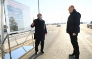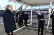 Dövlətimizin başçısı “Şimal-Cənub” beynəlxalq nəqliyyat dəhlizinin tərkib hissəsi olan Bakı-Quba-Rusiya Federasiyası ilə dövlət sərhədi yeni avtomobil yolunun 30 kilometrlik birinci hissəsinin açılışında da iştirak edib.