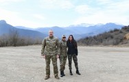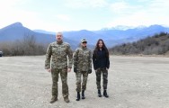 Füzuli-Şuşa yolunun Xocavənd rayonunun Böyük Tağlar kəndi ərazisindən keçən hissəsində dövlətimizin başçısı, birinci xanım və qızları Leyla xatirə şəkli çəkdirdilər.