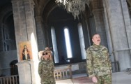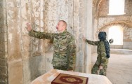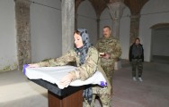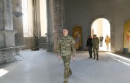 Sonra Prezident İlham Əliyev, birinci xanım Mehriban Əliyeva və qızları Leyla Əliyeva Şuşadakı Qazançı kilsəsinə baxdılar.