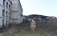 Daha sonra Prezident İlham Əliyev, birinci xanım Mehriban Əliyeva və qızları Leyla Əliyeva erməni vandalizminin qurbanı olmuş Şuşa Realnı Məktəbinin dağıdılmış binası ilə tanış oldular.