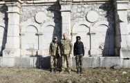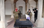 Prezident İlham Əliyev, birinci xanım Mehriban Əliyeva və qızları Leyla Əliyeva vaxtilə Molla Pənah Vaqifin büstünün və məqbərəsinin olduğu yerə gəldilər.