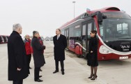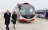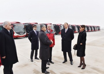 Prezident İlham Əliyevə “Bakubus” MMC-nin “İVECO” markalı yeni avtobusları barədə də məlumat verildi. İlkin mərhələdə Fransa istehsalı olan 302 avtobus alınıb. Yeni avtobuslarda gediş haqqı kartla ödəniləcək. Bu kartdan həm də metroda istifadə olunacaq. Avtobuslardakı bütün materiallar yanğına, donmaya və buxarlanmaya davamlıdır. Təhlükəsizliyin təmin edilməsi məqsədi ilə avtobusların salonlarında kameralar quraşdırılıb, qapılar xüsusi sistemlə təchiz edilib. Bu nəqliyyat vasitələrində uşaq və əlillər üçün xüsusi oturacaqlar qoyulub. Avtobusların daha bir üstünlüyü isə onların sıxılmış təbii qazla işləməsidir. Bu da ekoloji baxımdan əhəmiyyətlidir.
