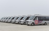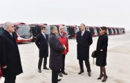 Daha sonra Prezident İlham Əliyev və xanımı Mehriban Əliyeva ilk Avropa Oyunlarında iştirak edəcək yüksək səviyyəli qonaqların daşınması üçün alınan “Mercedes” markalı mikroavtobuslara baxdılar.