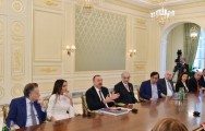 Prezident İlham Əliyev xalq artisti Polad Bülbüloğlunun 70 illik yubiley mərasimində iştirak etmək üçün Bakıya gələn bir qrup tanınmış mədəniyyət və incəsənət xadimi ilə görüşüb