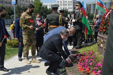 Azərbaycan Milli Qəhrəmanı Albert Aqarunovun doğum günü münasibəti ilə Milli Qəhrəmanın heykəlinin önünə gül əklikləri qoyularaq xatirəsi yad edilmişdir.